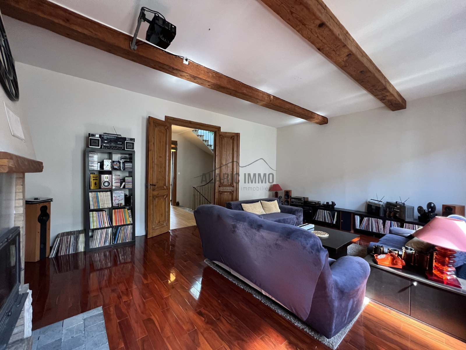 - Deux salons lumineux d’environ 35 m² chacun (parquet ancien, poutres, moulure, cheminée)