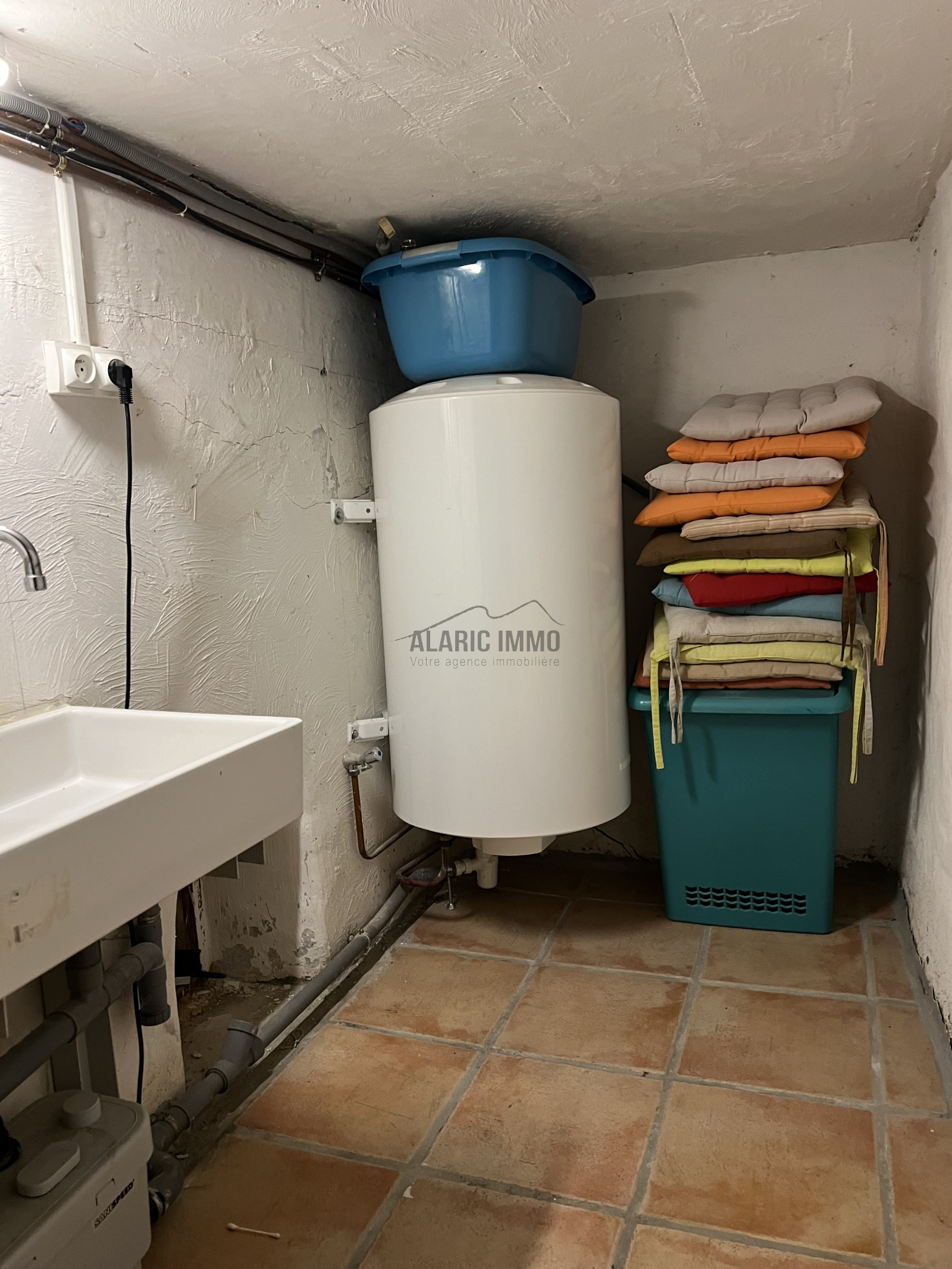 En sous-sol, une cave aménagée servant actuellement de buanderie et d'espace de stockage.