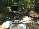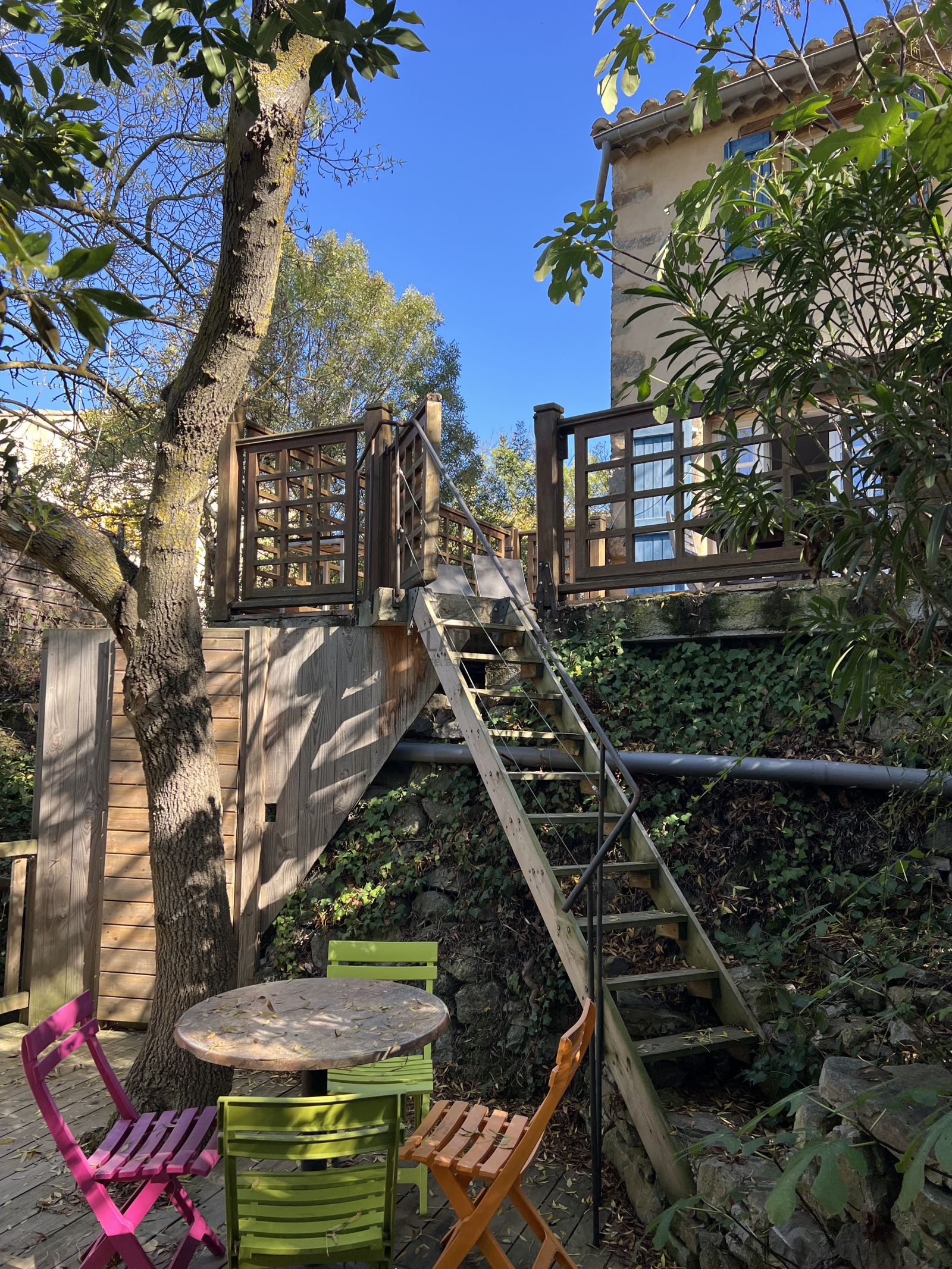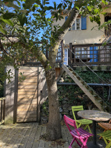 Elle se compose en RDC d'une belle pièce de vie de 40m2 avec accés direct au jardin aboré : 3 terrasses, 3 ambiances, nichées au coeur de la nature et en communion avec les oiseaux!