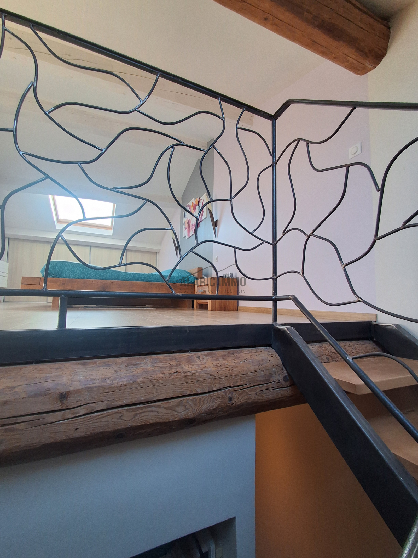 First floor accessed via a magnificent master wrought iron staircase, a unique piece crafted by a master ironworker, featuring two spacious bedrooms with deep built-in wardrobes, an elegant bathroom with double vanity and oversized walk-in shower, separate WC, office, and a versatile 40 m² multi-purpose room (guest bedroom, gym or games room, with spa-jacuzzi).