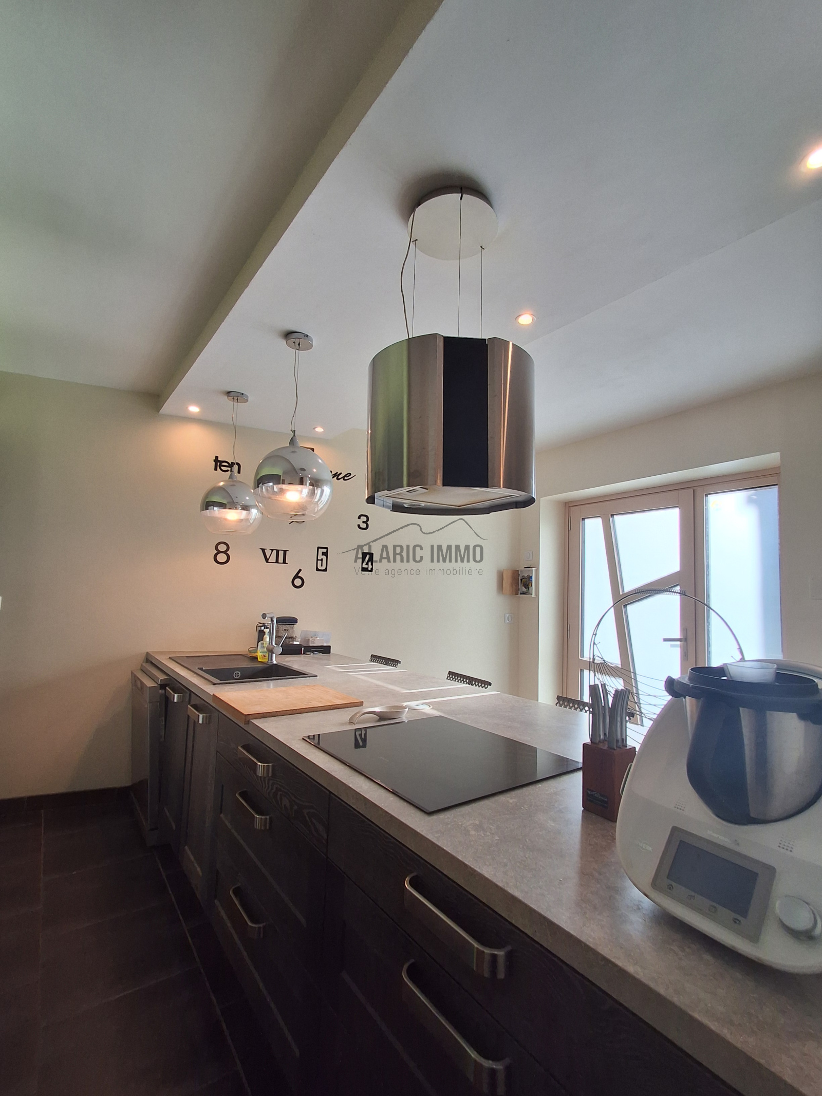 Entry through the kitchen for immediate conviviality around the welcoming central island (seating for 4) and a living-dining area opening onto the outdoor barbecue space. Large garage for storage on the ground floor. Utility-laundry room.