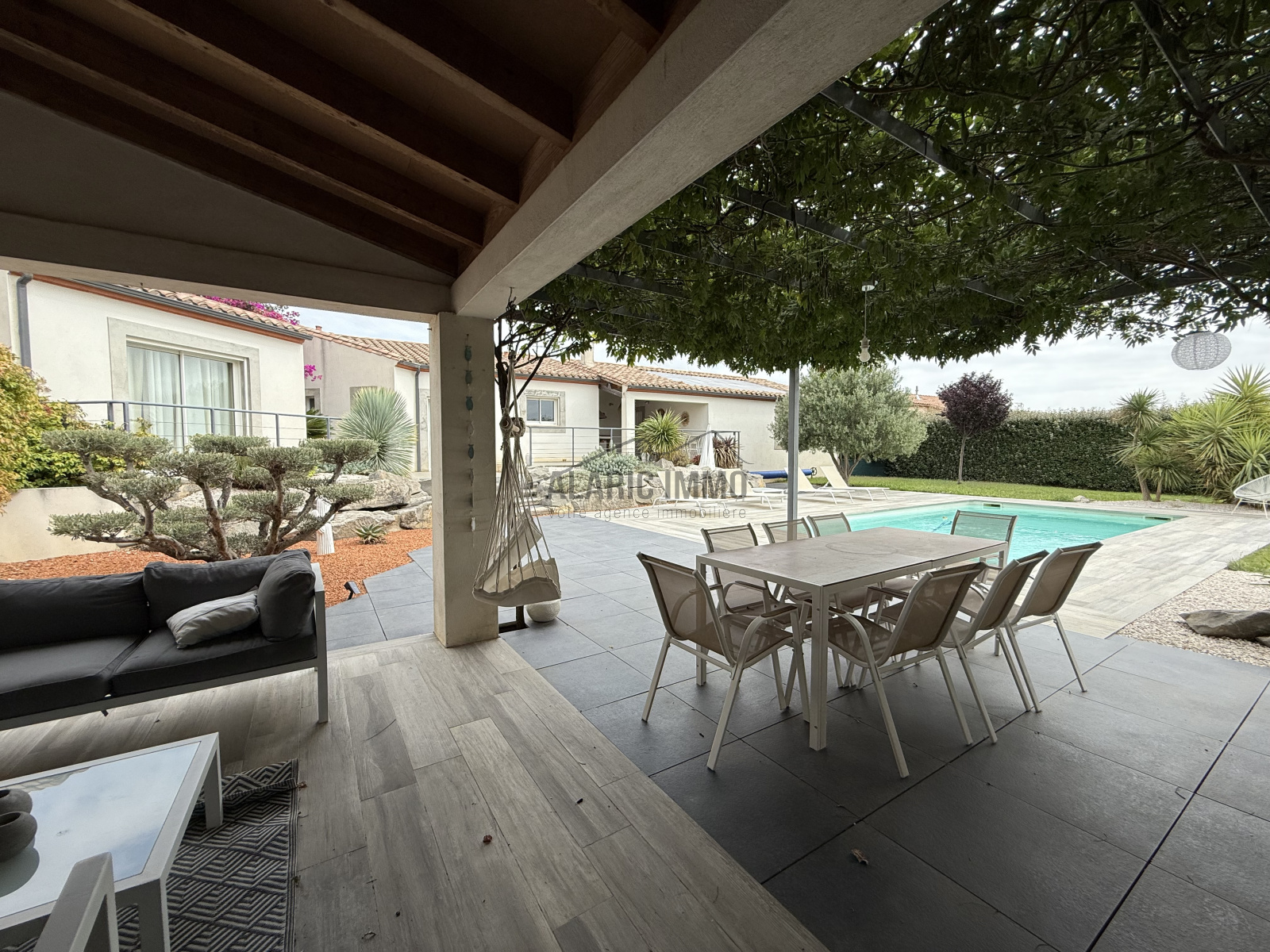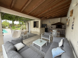 Dans village recherché et courtisé, idéalement situé entre Carcassonne et Narbonne, nous vous proposons à la vente cette superbe villa d'architecte, plain pied de 138 m² sur parcelle de 2262 m² comprenant un grand garage de 60 m² et un atelier de 60 m². Elle se compose d'une entrée desservant un coin bureau avec WC indépendant et vestiaire, une magnifique pièce de vie avec cuisine US totalement équipée, 3 chambres dont une avec son dressing privatif, une grande salle d'eau et une buanderie avec accès sur garage attenant. Côté exterieur, jardin d'environ 2000 m² clos et arboré sans vis à vis comprenant une piscine dimension 8x4 et pool house avec salon d'été, cuisine, coin barbecue et wc indépendant. Le plus : atelier de 60 m² indépendant pouvant être transformé en gîte/studio... Maison équipée entièrement de la climatisation gainable et de panneaux photovoltaïques en autoconsommation